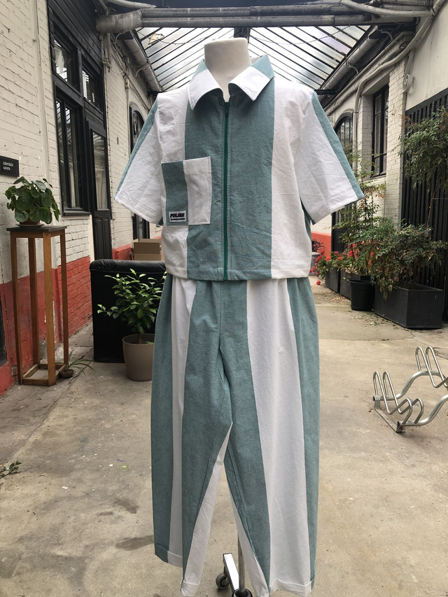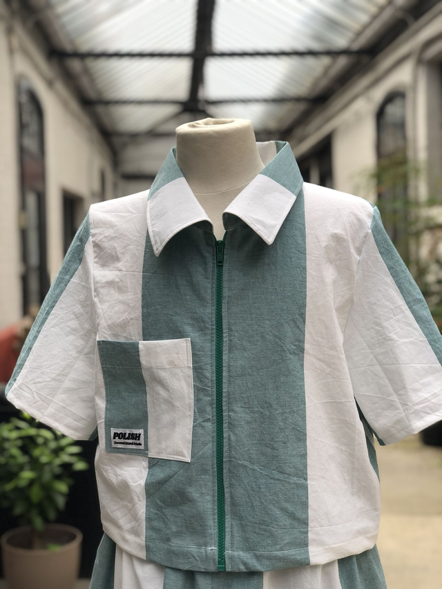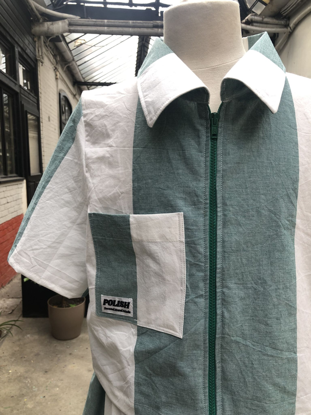 Chemisier manches courtes avec zip vert pour l'ouverture